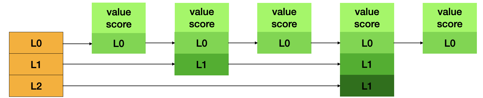 相较Set而言,Zset在确保集合元素的唯一性之外,同时增加了排序的特质。原理是在底层实现的时候多存了一个权重的字段,可以按照权重的大小进行排序。但是在数据结构的设计上却与Set大相径庭,为了实现高效率有序的插入,Zset使用了跳表的结构。当新元素要插入的时候可以依据多级的索引快速定位插入位置以保证集合的有序性。