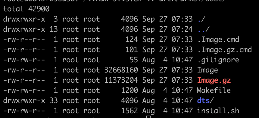 编译完成之后我们可以看到 目录下~/linux-5.13.8/arch/arm64/boot/应该有Image相关的文件