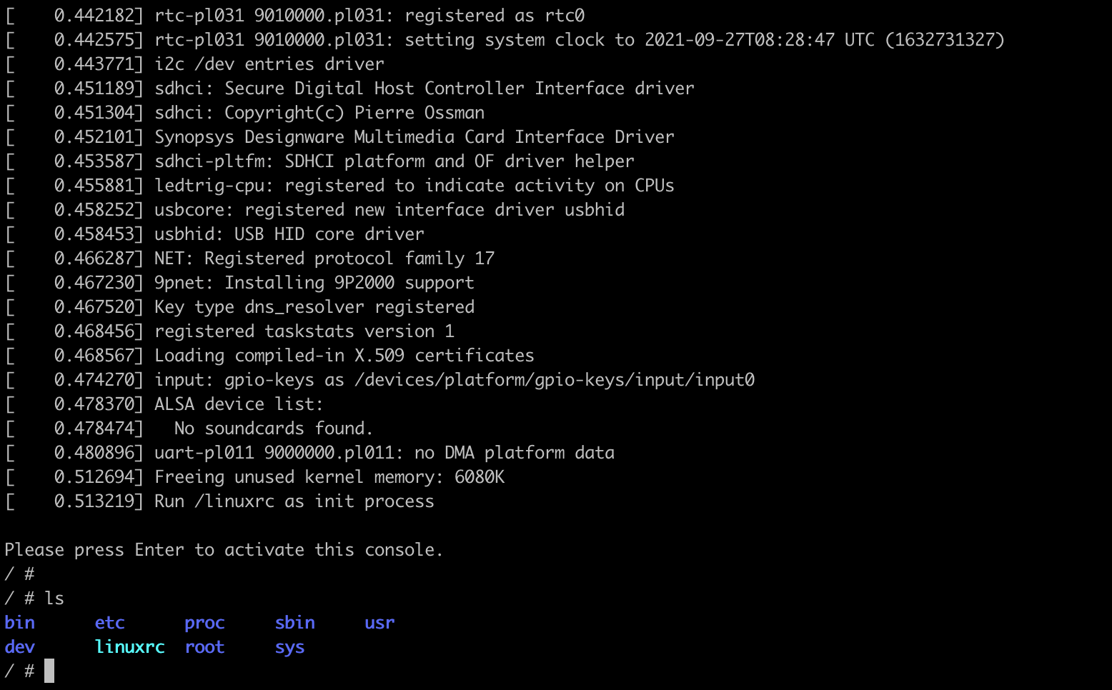 --append "console=ttyAMA0 rdinit=/linuxrc nokaslr"