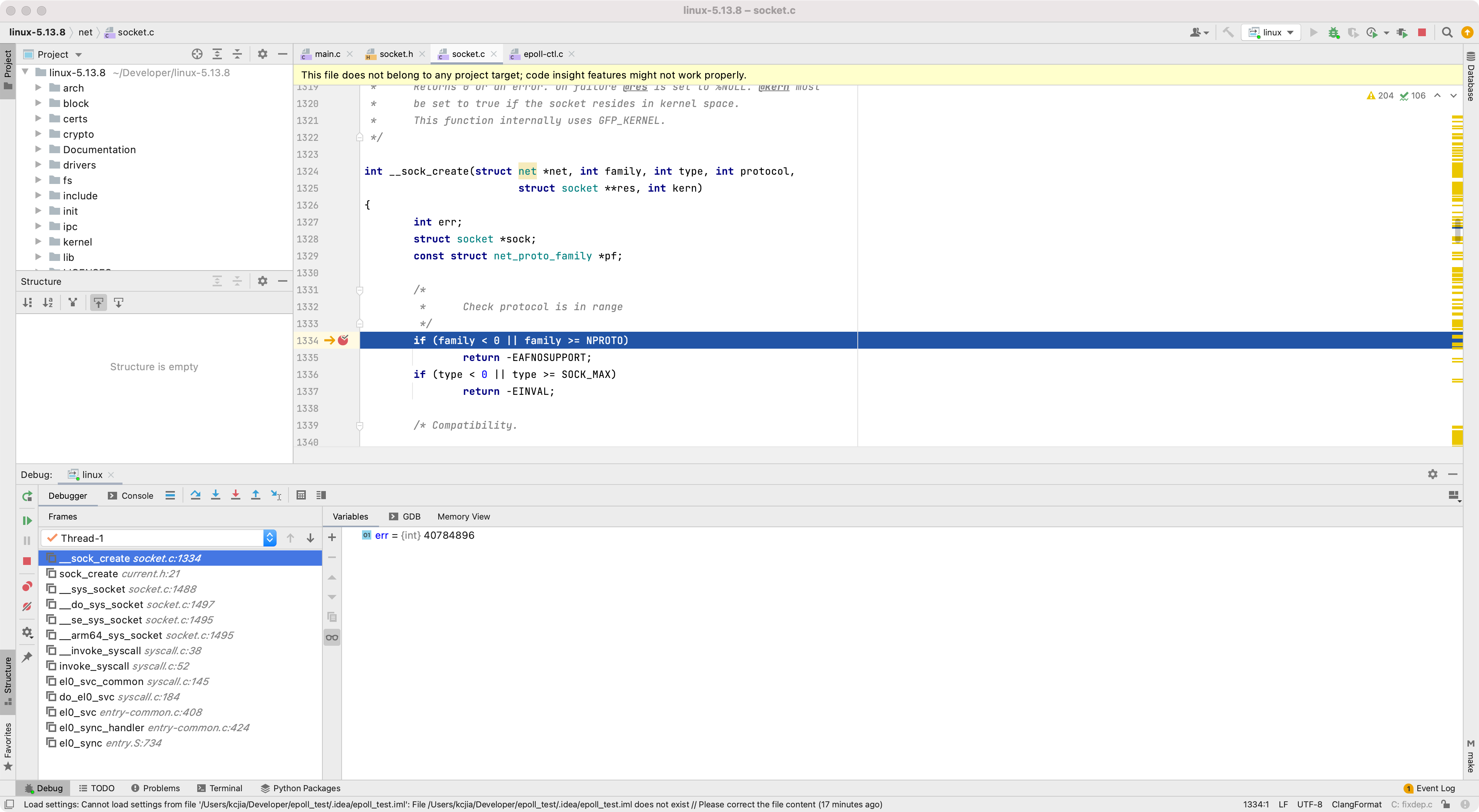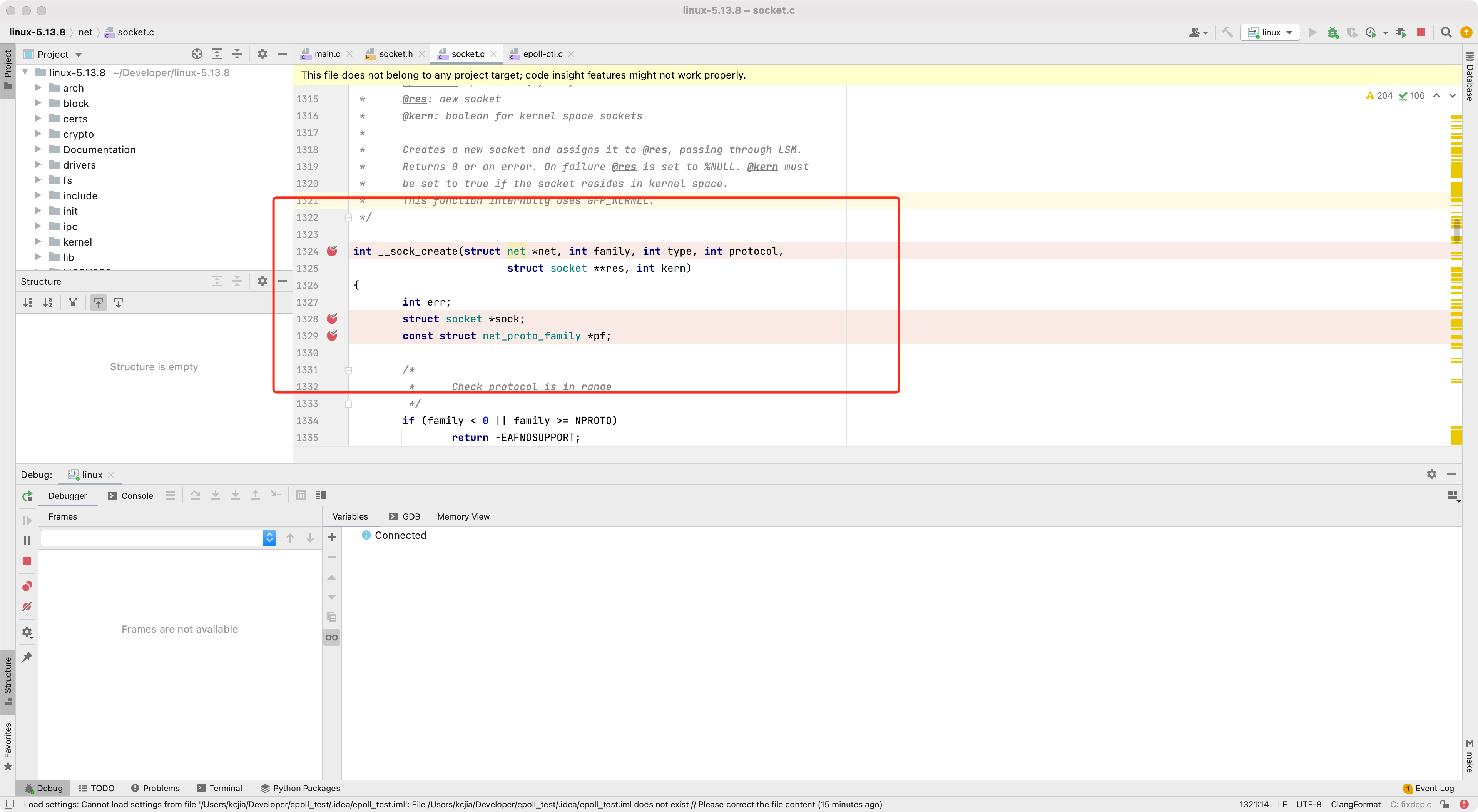 最后说一下如何去debug某些具体的系统调用,比如我希望debug一下socket_create这个方法
